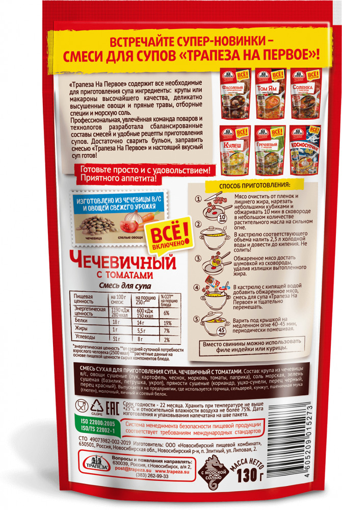 Трапеза Смесь для супа «Чечевичный с томатами»+23 вкус состав специй быстро готовится