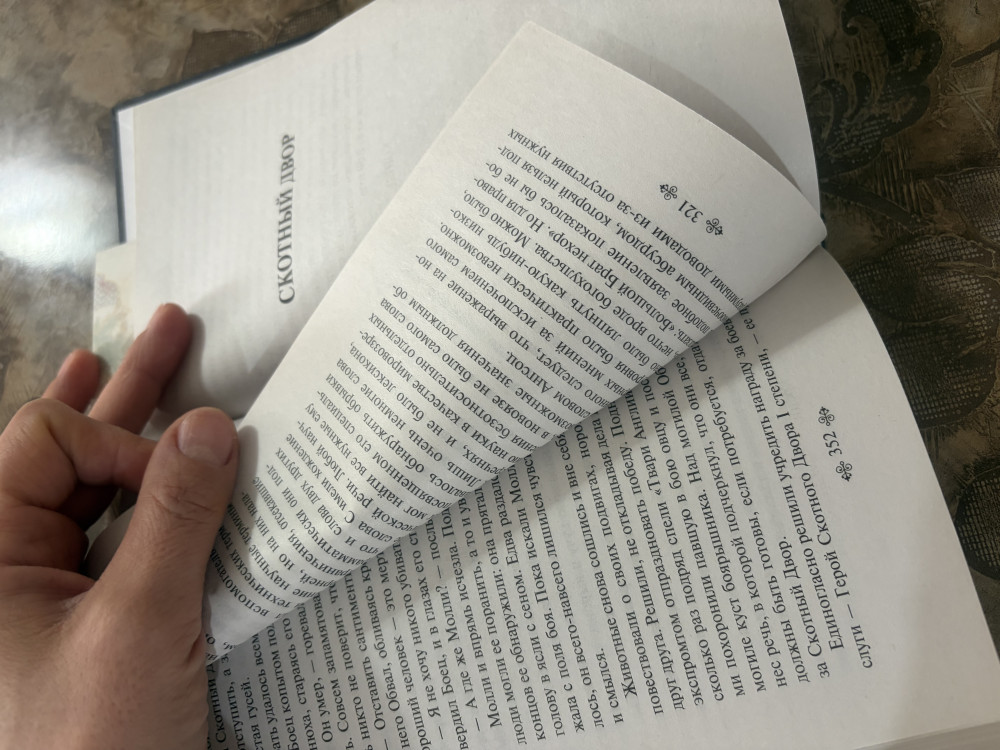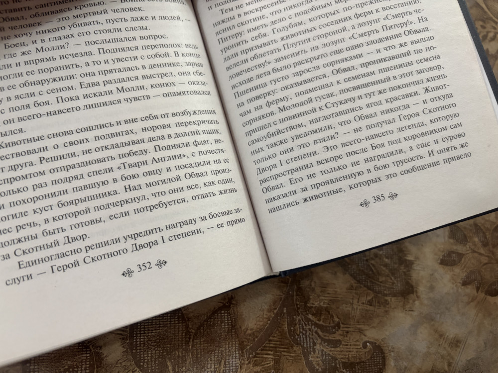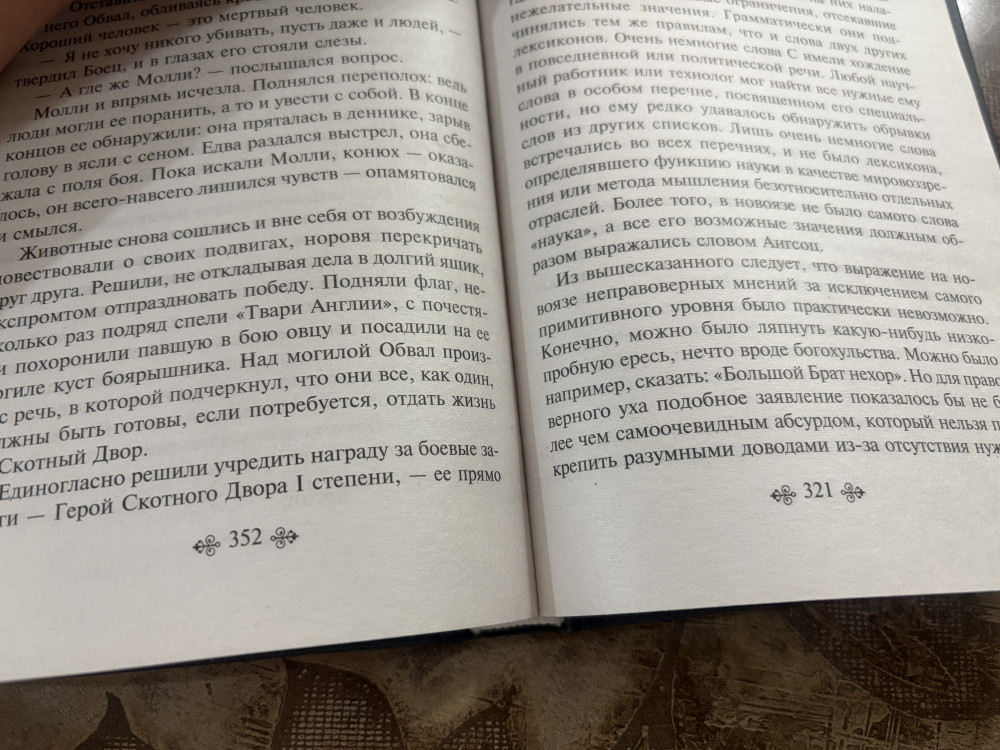 К сожалению мне попался экземпляр с браком. В произведении «Скотный двор» в 4 главе идет серьезная заминка с листами. Как выпустили в продажу - не понятно:( Фото прикрепляю. К флипу претензий нет, все как всегда отлично.