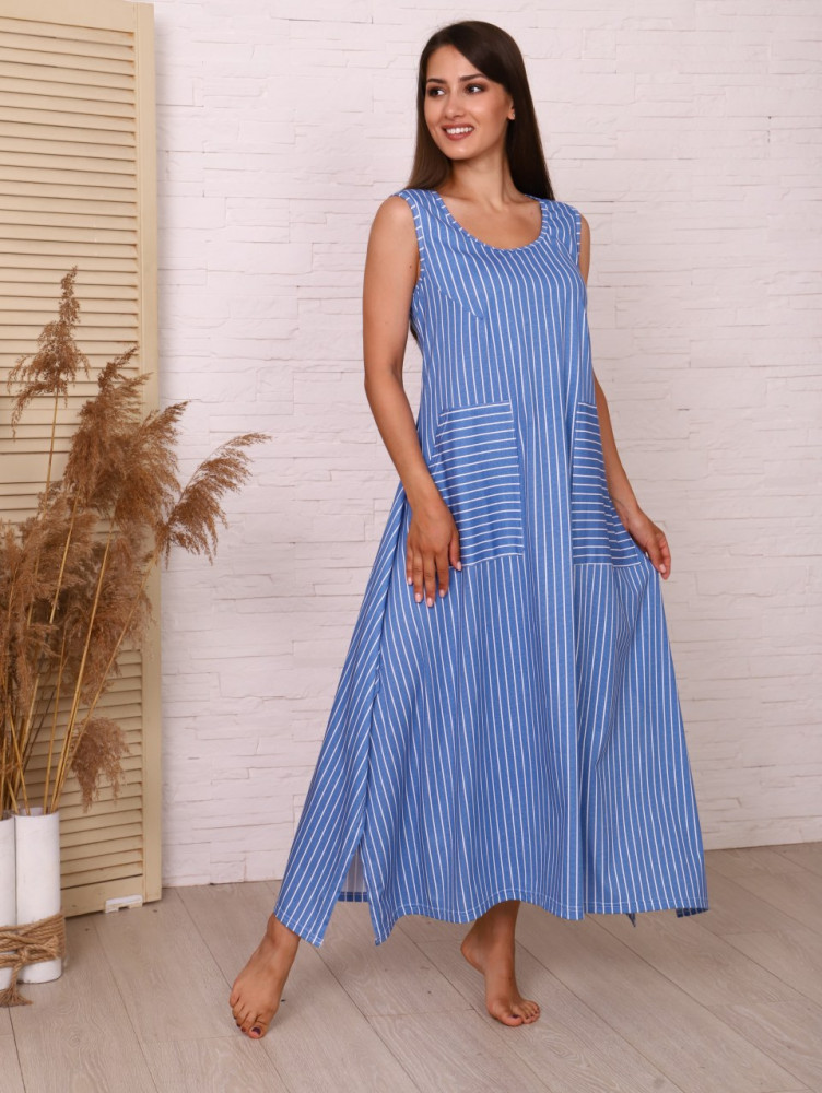 Платье совсем не понравилось. Сидит совершенно не так как на фото. Разрез по бокам глубокий не так как на фото - 61 см. Очень просторное и низ сшит просто некрасиво. Ткань двойная: изнутри х/б, а снаружи синтетика, причём "кусается". У меня кожа чувствительная, от такой ткани стали руки и шея чесаться. Оставила для дома, потому что в таком платье точно никуда не пойду. И не знаю вообще буду ли дома носить. Из плюсов - платье не мнётся (синтетика!).