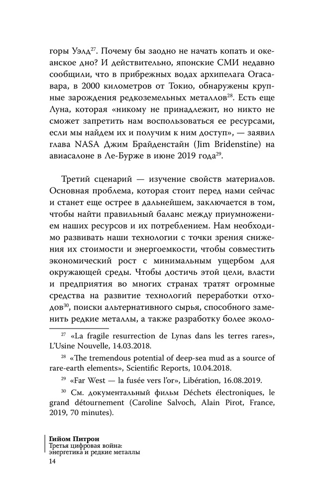 💳 Оплатить за товар можно при получении 🇰🇿 Есть бесплатная доставка по Казахстану 🎁 Копите бонусы с каждой покупки Серия: Бизнес-бук Цифровая революция, энергетический переход, экологические изменения... Политики, СМИ, промышленники — все обещают нам новый мир, свободный, наконец, от нефти, загрязнения и военной напряженности. Эта книга, результат шести лет исследований в десятке стран, показывает нам, что это не так! Освобождаясь от традиционных видов топлива, мы фактически попадаем в новую зависимость — зависимость от редких металлов. Графит, кобальт, индий, платиноиды, вольфрам, редкоземельные элементы ̶ эти ресурсы стали важными для нашего нового экологического и цифрового общества, они содержатся в электромобилях, солнечных батареях, ветряных турбинах, а также в наших смартфонах, компьютерах и других, связанных с Интернетом устройствах. Однако экологические, экономические и геополитические издержки этой зависимости могут оказаться даже более значительными, чем те, которые связывают нас с нефтью. |