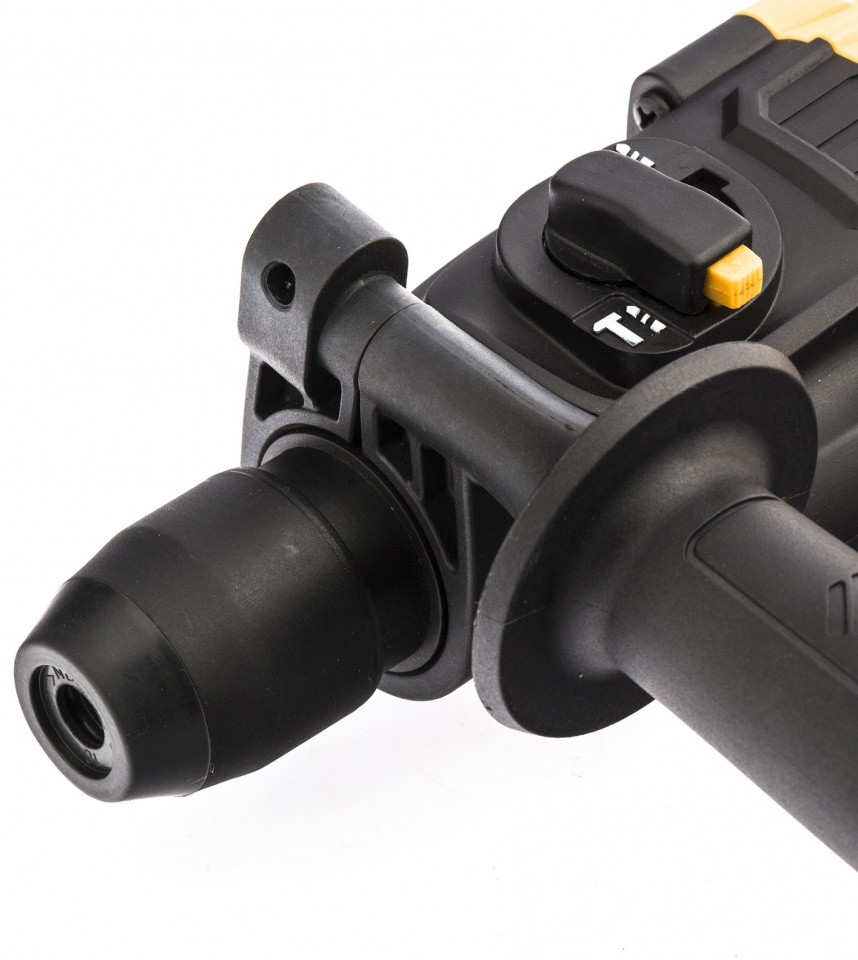 Denzel Перфоратор электрический RH-400-12В данный момент этот товар отсутствует в продаже. Возможно, у нас найдется аналогичный или похожий товар здесь. Легкий перфоратор Denzel RH-400-12 подходит для проведения отделочных и монтажных работ. Это отличная альтернатива ударной дрели: такой же компактный, но благодаря вакуумно-компрессионному механизму не нужно прикладывать дополнительных усилий при сверлении и бурении даже бетонных и кирпичных конструкций. За счет небольшого веса 1,8 кг инструмент можно долго удерживать на весу, что делает его незаменимым при проведении работ на потолке и в труднодоступных местах. Энергия удара 1,2 Дж и мощность 400 Вт обеспечивают высокую продуктивность даже при работе с твердыми материалами. Легко подобрать оптимальный режим работы благодаря плавной регулировке частоты вращения шпинделя 0-1500 об/мин и частоты ударов 0-6680 уд/мин. Максимальный диаметр бурения бетона 12 мм, сверления древесины 25 мм, металла 13 мм. |