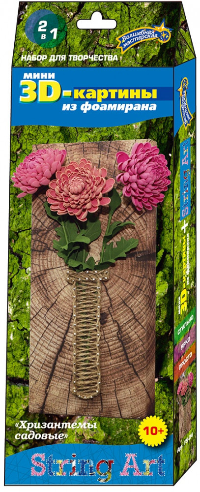 Волшебная мастерская Набор для творчества «Хризантемы садовые»В данный момент этот товар отсутствует в продаже. Возможно, у нас найдется аналогичный или похожий товар здесь. Эта удивительная серия картин — возможность открыть для себя две техники рукоделия в одном наборе. Вы ответите на вопрос, подходит для вас данные виды творчества или нет. Фоамиран — исключительный материал, легко поддающийся тепловой обработке, за счет которой, плоские детали приобретают объем и превращают картину в настоящую арт-композицию. Нити гармонично обрамляют картину и позволяют сделать первые шаги в освоении техники SТRING ART. Набор скомплектован по принципу «все включено». Содержит подробнейшую инструкцию с пошаговыми фотографиями. В отличии от предыдущих серий все детали цветов и листьев заложены в набор в готовой вырубке. Стильная, современная композиция будет достойным украшением интерьера. |