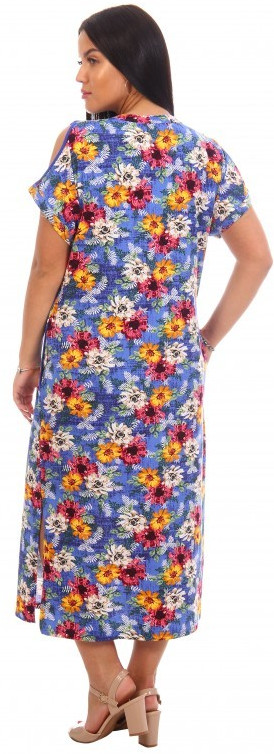 Платье называется Гликерия) Считаю, что идет размер в размер, модель предполагает достаточно свободное облегание. На мой 60 свободно, и не скажу что утопаешь в нем, по плечам разрезы на месте, и мои бретели не выглядывают в разрезы. Длинное, на рост 178 карманы на месте. Расцветка яркая, как на фото. Оторочка на карманах и по разрезам на плечах из однотонного синего цвета, смотрится гармонично, не вычурно. Качество ткани супер, на жаркое лето самое то, кажется что будет просвечивать на сильном солнце, но это надо еще проверить, и свободный покрой в данном случае в плюс. Отличное платье для дома и отдыха. Рекомендую к покупке.