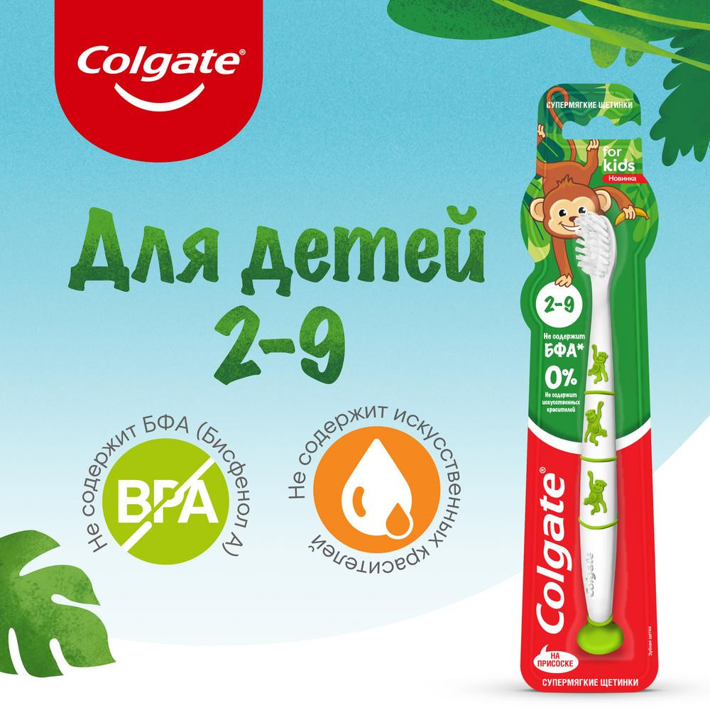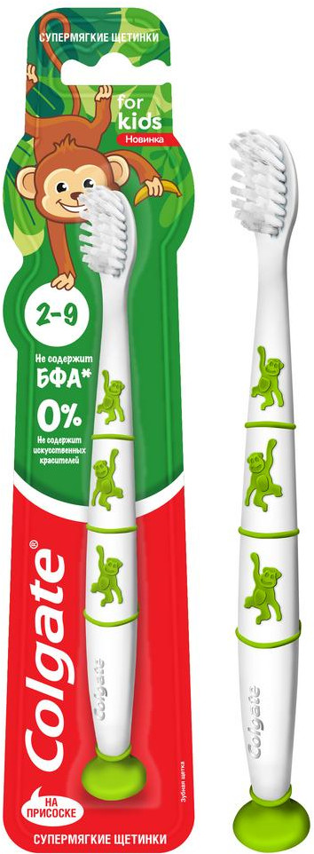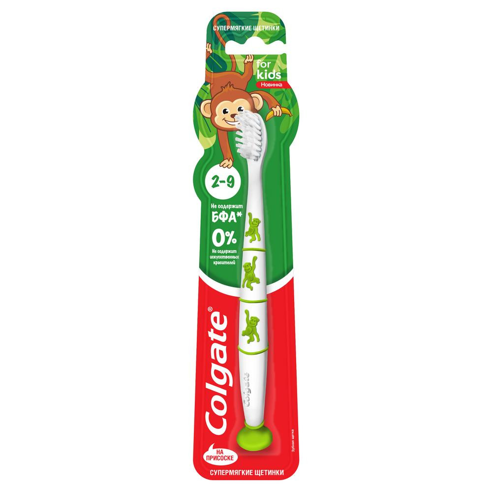 Colgate Щетка зубная супермягкая «Для детей 2-9»+46 мягкие щетинки присоска удобная ручка подходит детям