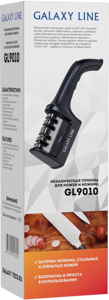 Galaxy Точилка для ножей и ножницВ данный момент этот товар отсутствует в продаже. Возможно, у нас найдется аналогичный или похожий товар здесь. Механическая точилка для ножей и ножниц GALAXY LINE GL9010 предназначена для заточки лезвий кухонных ножей и ножниц. Дополнительным преимуществом данной точилки является возможность заточки зубчатых ножей. Высокоэффективные точильные элементы с алмазным покрытием обеспечивают качественную заточку всего за несколько движений. Предустановленные углы заточки, позволяют добиться идеального результата в домашних и походных условиях, и не требует специальных навыков и опыта заточки. |