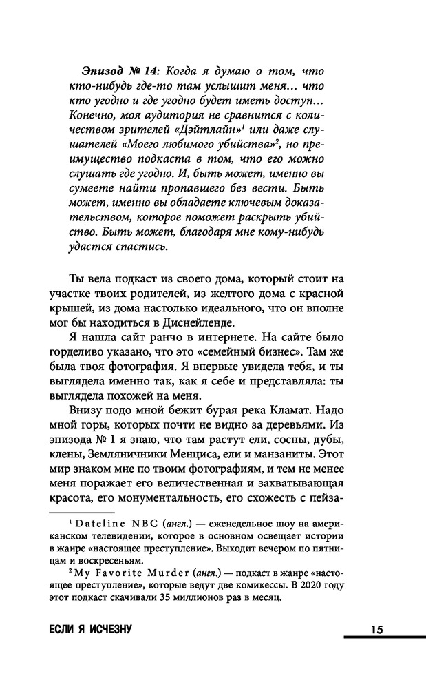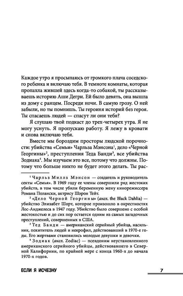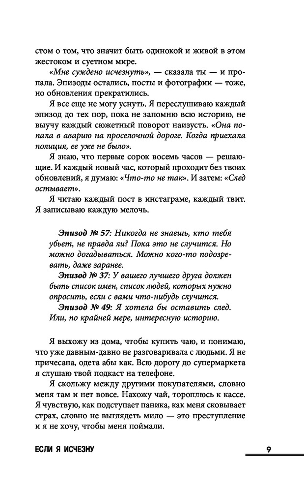 Сера может наизусть процитировать каждый эпизод подкаста о настоящих преступлениях. Эти истории дают ей чувство контроля и защиты в мире, где женщины исчезают ежедневно. Поэтому, когда ведущая подкаста по имени Рэйчел пропадает, Сера понимает, что обязана спасти девушку, ведь именно Рэйчел учила ее всегда доверять своим инстинктам.