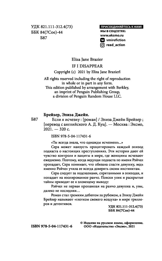 В данный момент этот товар отсутствует в продаже. Возможно, у нас найдется аналогичный или похожий товар здесь. Серия: Tok. Триллер в сети «Ты всегда знала, что однажды исчезнешь...»