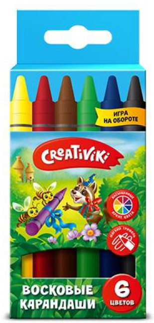 Creativiki Карандаши восковые+12 маленький размер мягко рисуют яркие цвета безопасные