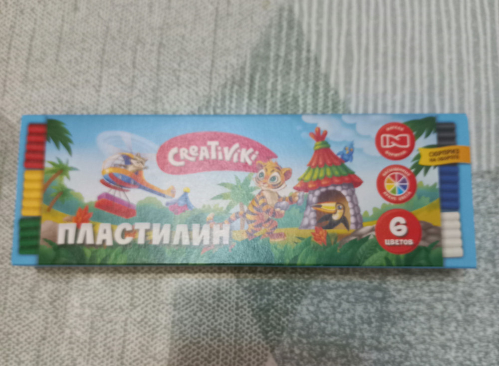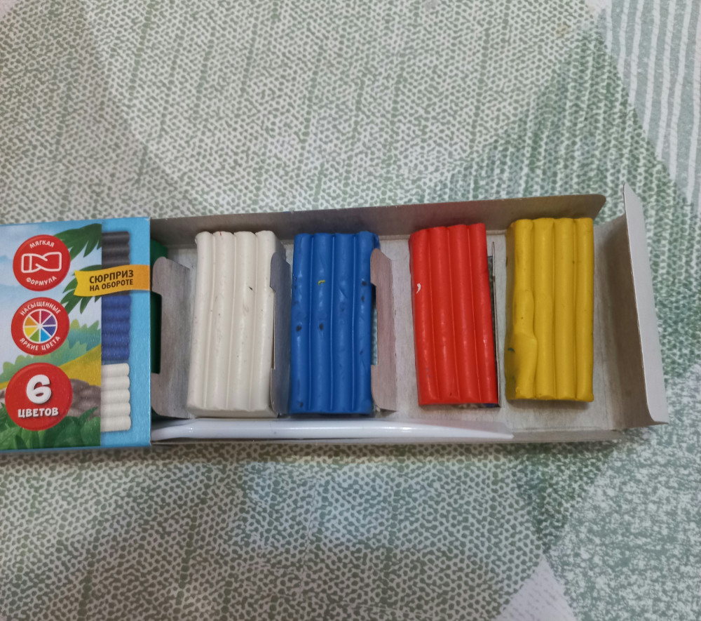 Мнение клиентов: Пластилин многие отмечают как мягкий и приятный на ощупь, он не липнет и не красит руки, цвета нравятся детям. При этом часть покупателей указывает на компактный размер коробочки и кусочков, из‑за чего пластилина может не хватить надолго.