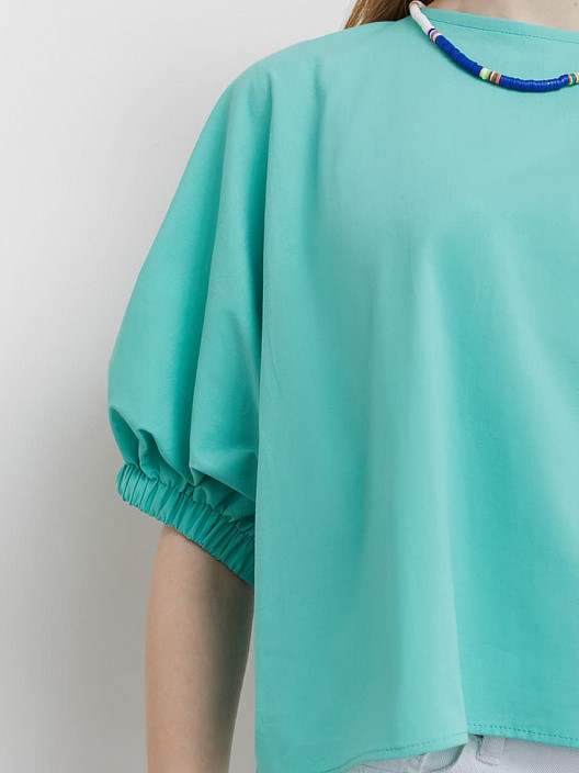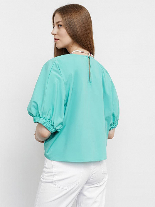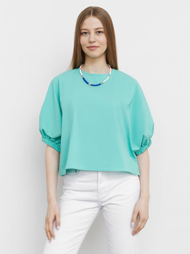 блузка понравилась, красивый мятный цвет. соответствует описанию, на 48 размер взяла 48. свободная в талии