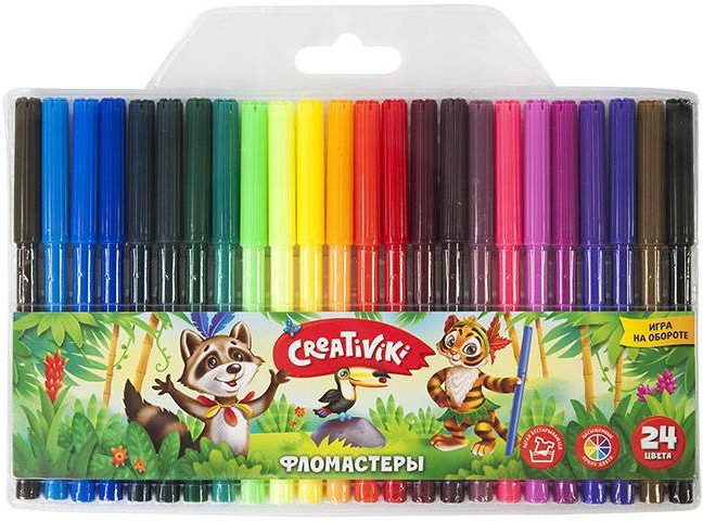 Creativiki ФломастерыВ данный момент этот товар отсутствует в продаже. Возможно, у нас найдется аналогичный или похожий товар здесь. Яркие и насыщенные фломастеры — 24 цветов. Маленькие креативики в процессе рисования раскрывают творческий потенциал, учатся аккуратности, усидчивости, а весёлая игра на обороте развивает внимательность. Изготовлены из хорошего пластика, оснащены вентилируемым колпачком, согласно нормам безопасности, и легко отстирываются с одежды. Диаметр корпуса — 8 мм, размер с колпачком — 133 мм. |