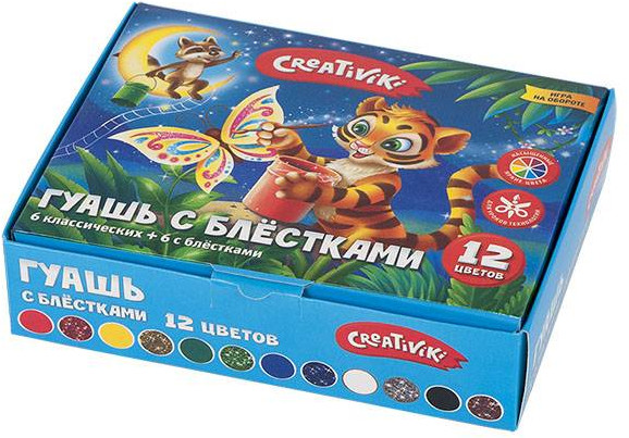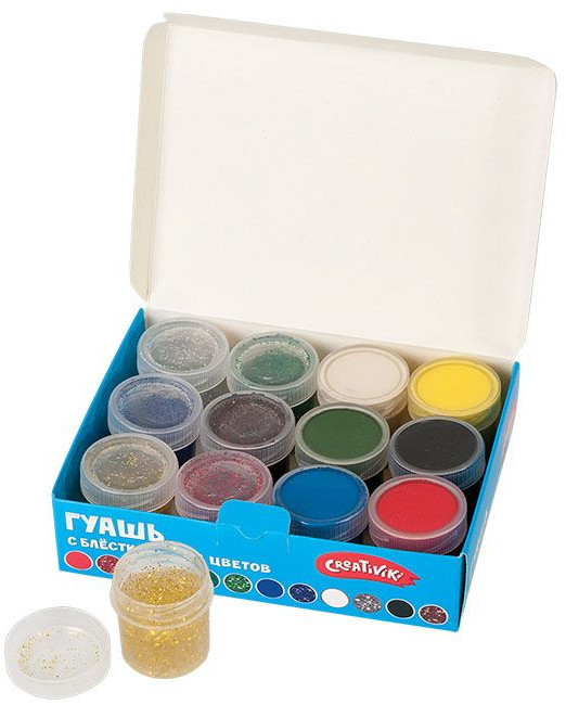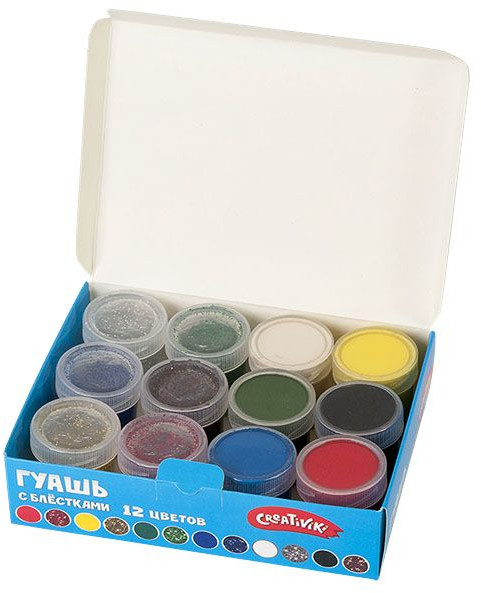 Creativiki Гуашь с блесткамиВ данный момент этот товар отсутствует в продаже. Возможно, у нас найдется аналогичный или похожий товар здесь. Рисование развивает мелкую моторику и подготавливает руку ребенка к письму, развивает чувство цвета, композиции и пространственного мышления. Гуашевые краски — один из любимых детских материалов для рисования. Обладая высокой пигментированностью и сочностью цветов, краски гуашевые Creativiki невероятно комфортны в использовании: они обладают высокой перекрывающей способностью, существующий слой краски можно полностью перекрыть новым и любая ошибка может быть легко исправлена. Яркие и красивые гуашевые краски имеют самый популярный объем баночек — 20 мл., каждая из которых имеет плотно закрывающуюся крышечку, что позволяет брать гуашь в школу и детский сад. Разнообразие оттенков поможет раскрыть творческий потенциал малыша и осуществить самые творческие фантазии! Помимо 6 цветов классической гуаши, в наборе 6 баночек с блёстками, с помощью которых рисунки маленьких креативиков будут выглядеть по-настоящему волшебными. Гуашь с блёстками представляет собой прозрачную основу, в которой находятся блёстки разных цветов — серебряные, золотые, бронзовые, красные, синие и зелёные. |