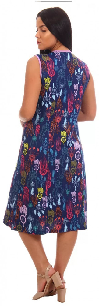Скорее всего это платье без рукавов, а не сарафан. Размер соответствует, расцветка не плохая, для лета немного темновато, но не критично. Рекомендую