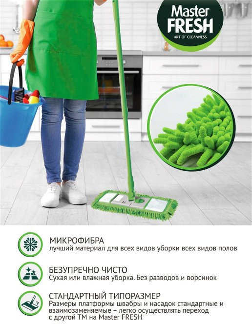 Master Fresh Насадка для швабры с длинным ворсом+59 без разводов долговечная впитываемость мягкий ворс качественная