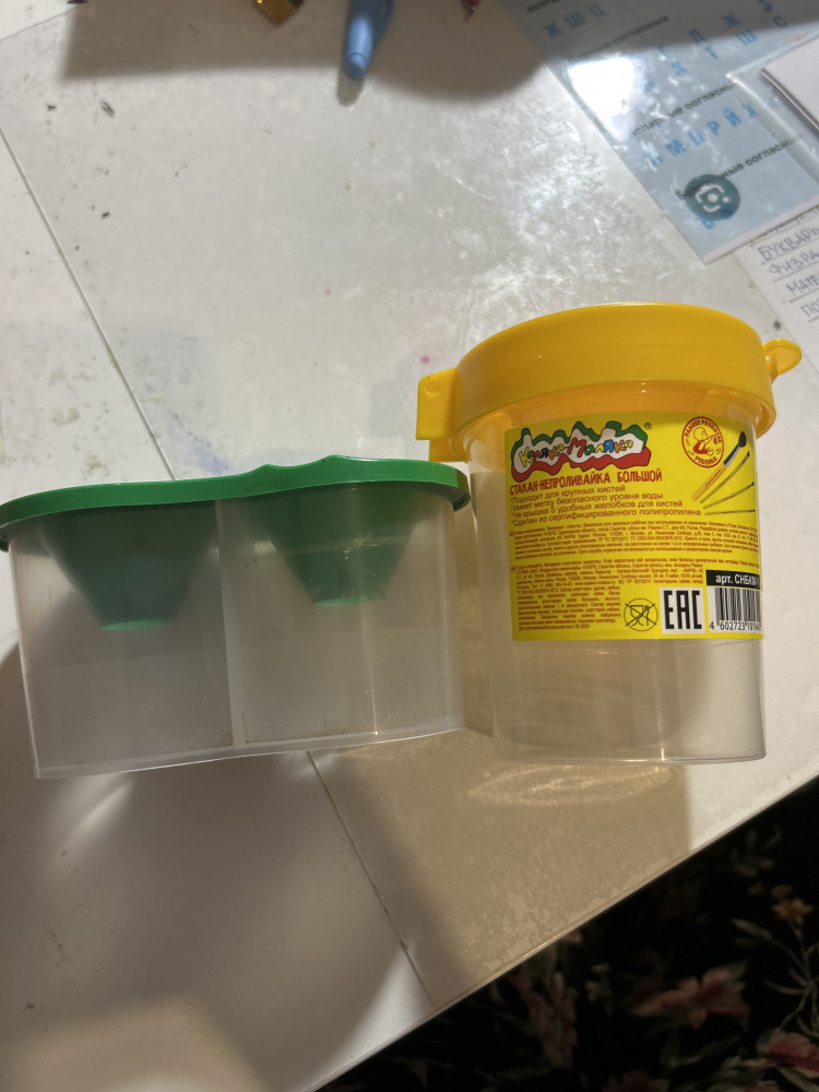 В линейке аксессуаров для рисования «Каляка-Маляка» появилась новинка — большой стакан-непроливайка, с объёмом 280 мл. С удобной, плотно прилегающей крышкой, ребенок не прольет воду в процессе творчества или при перемещении наполненного стаканчика. Специальная линия указывает на максимально возможный уровень наполнения стакана водой. Стакан-непроливайка изготовлен из экологически чистого полипропилена.