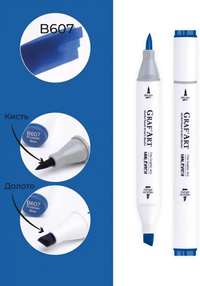 МалевичЪ Маркер спиртовой «Graf'Art», B607 Лазурь берлинская