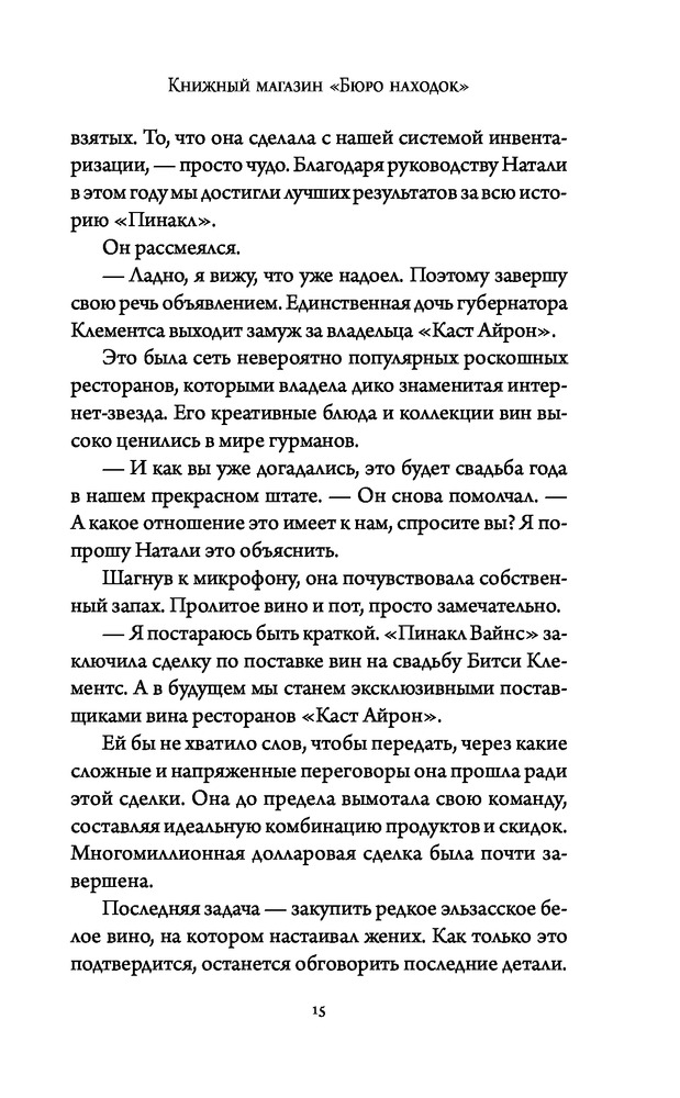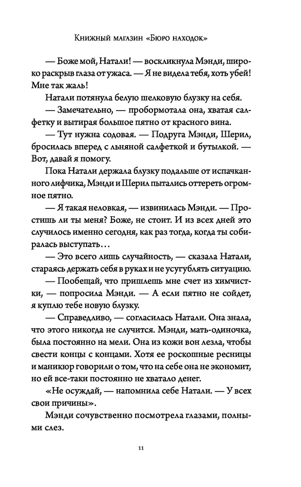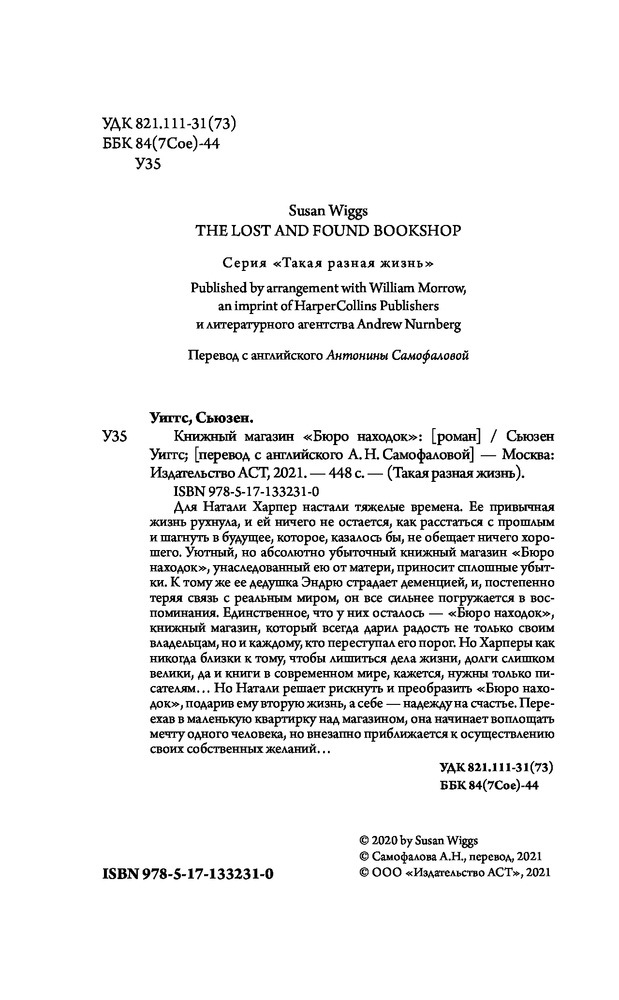 💳 Оплатить за товар можно при получении 🇰🇿 Есть бесплатная доставка по Казахстану 🎁 Копите бонусы с каждой покупки Серия: Такая разная жизнь Для Натали Харпер настали тяжелые времена. Ее привычная жизнь рухнула, и ей ничего не остается, как расстаться с прошлым и шагнуть в будущее, которое, казалось бы, не обещает ничего хорошего. Уютный, но абсолютно убыточный книжный магазин «Бюро находок», унаследованный ею от матери, приносит сплошные убытки. К тому же ее дедушка Эндрю страдает деменцией, и, постепенно теряя связь с реальным миром, он все сильнее погружается в воспоминания. |
