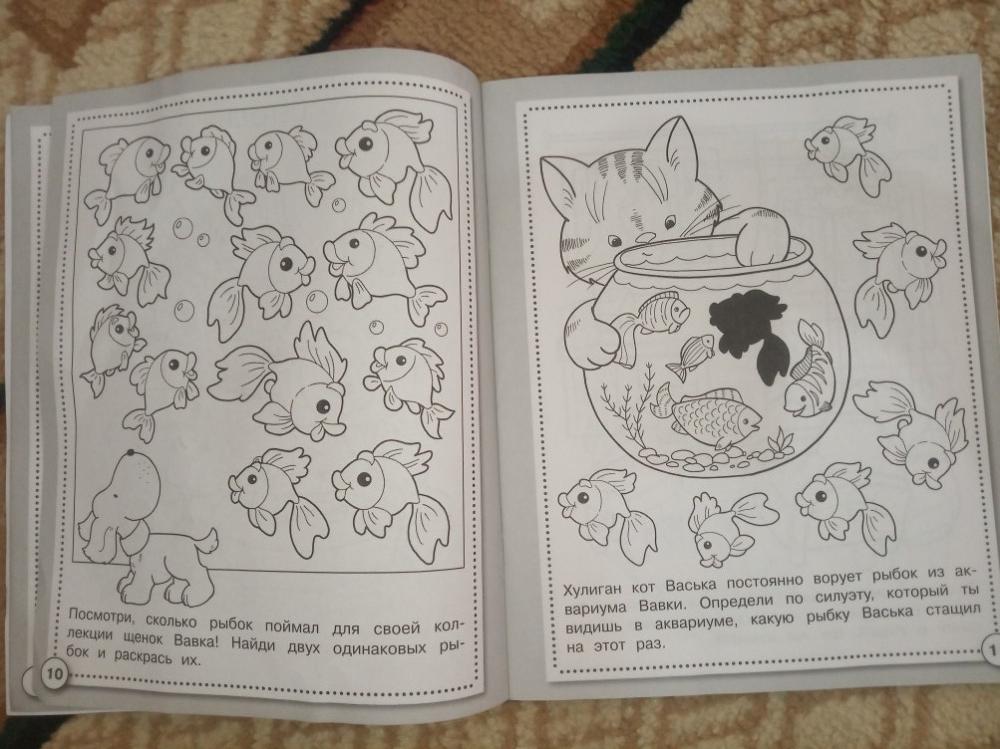 Тетрадь явно не для дошкольников. Присутствуют мелкие отличия, которые не то что дошкольник, а и взрослый не найдёт. Больше подходит для младших школьников. Можно потом раскрасить.
