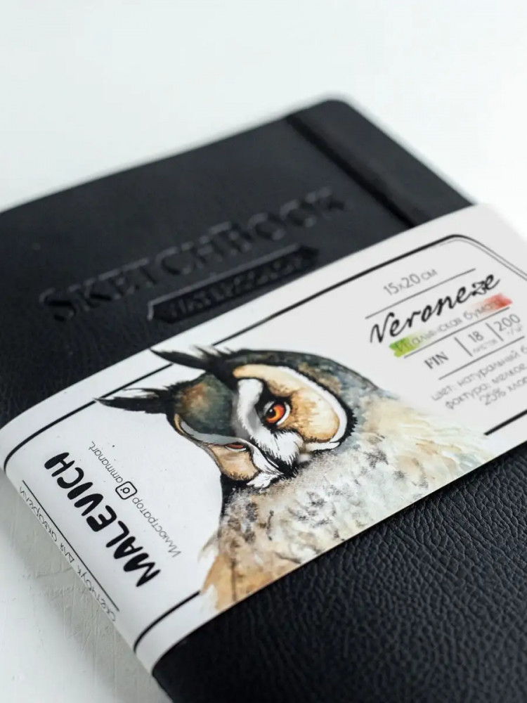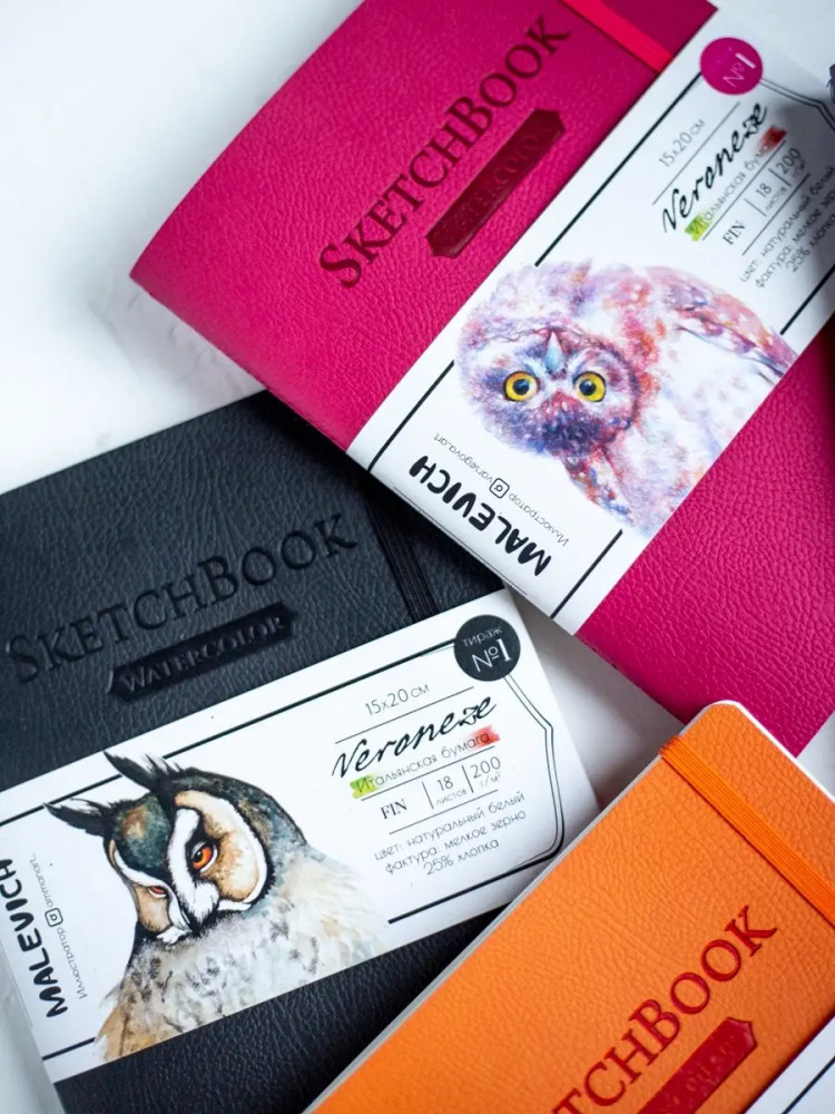 Очень понравился скетчбук😍 Плотная двусторонняя бумага и очень приятная на ощупь обложка) Рисовала уже с двух сторон, брала много воды, но лист после высыхания практически не деформировался. Я рисовать только учусь и мне нравится бренд Malevich. Спасибо!