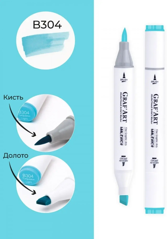 МалевичЪ Маркер спиртовой «Graf'Art», B304 Бирюзовый светлый