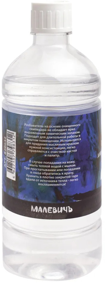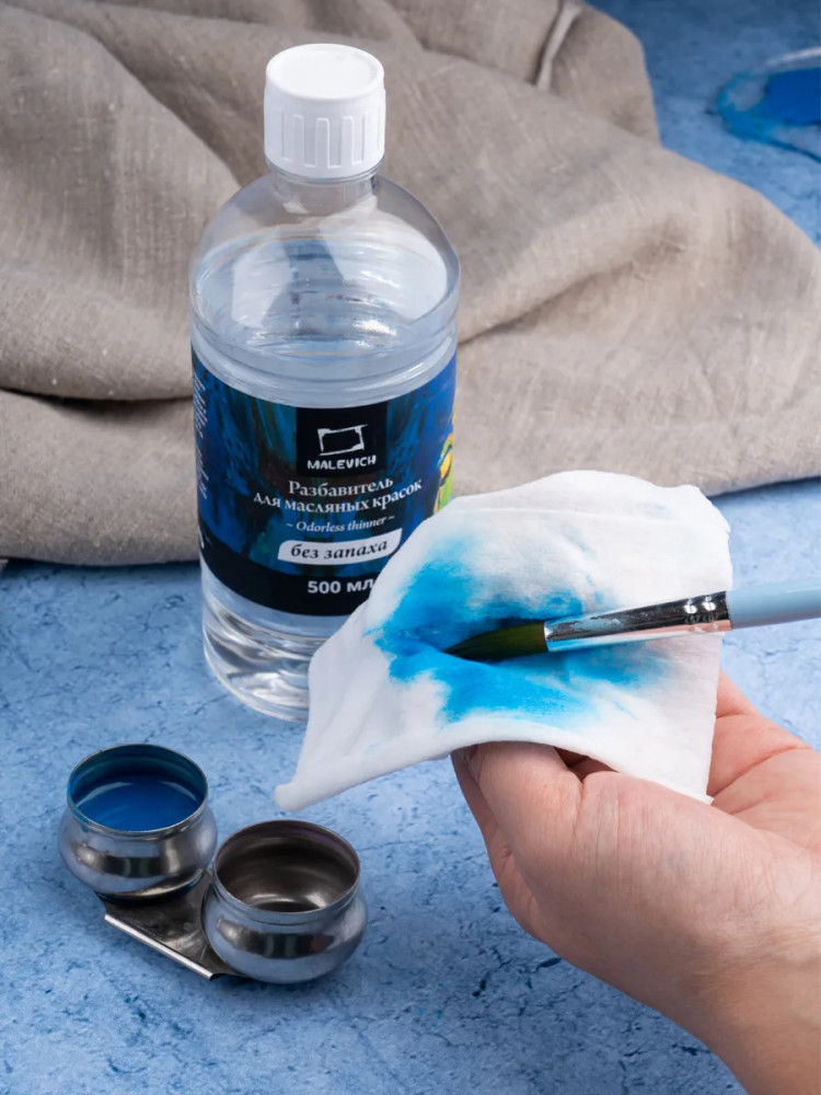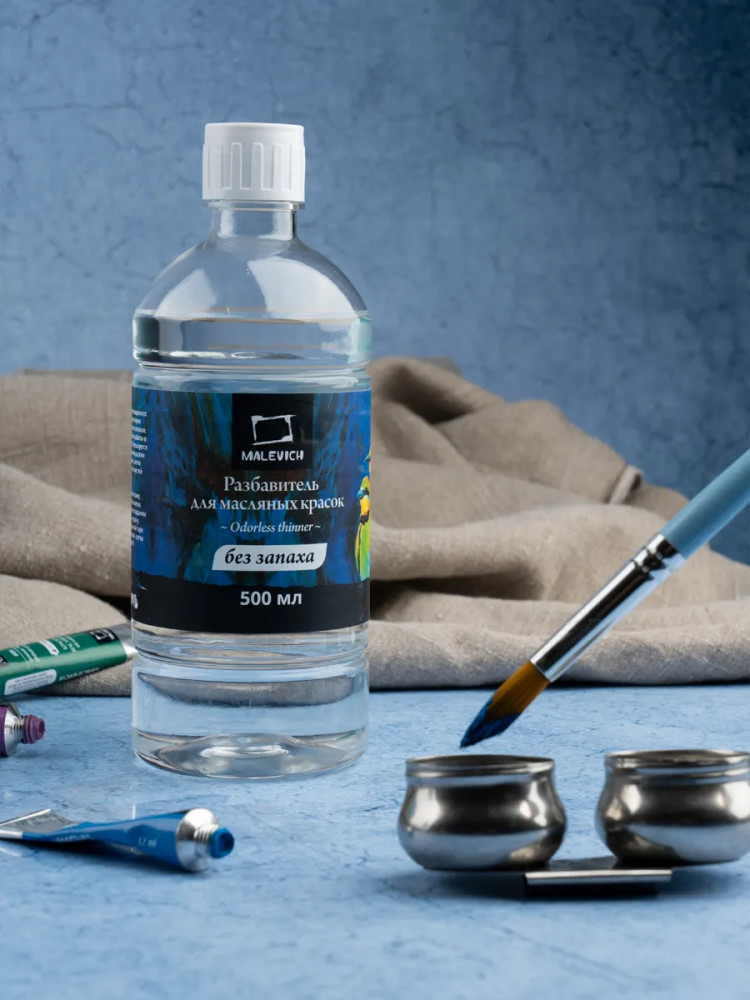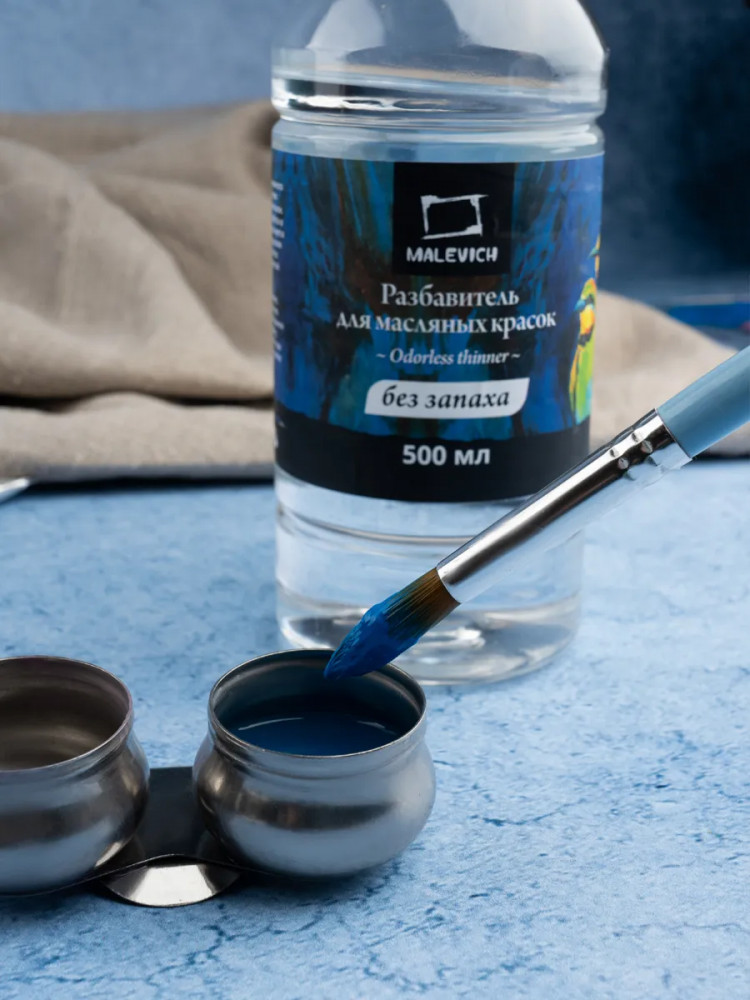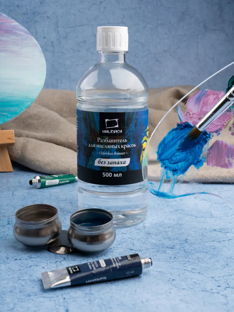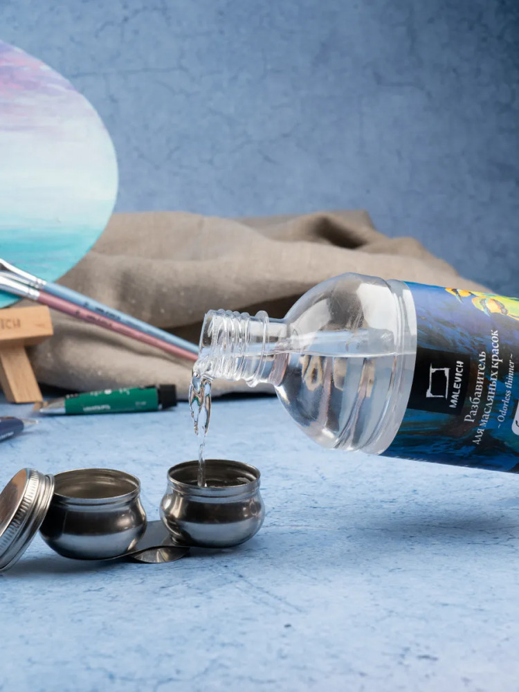 Разбавитель на основе очищенного скипидара не обладает химическим запахом, поэтому прекрасно подходит для длительной работы в закрытом помещении. Используется для придания масляным краскам нужной консистенции, а также легко справляется с очисткой кистей и палитр.