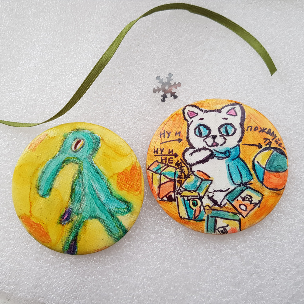 Беру значки не в первый раз. Отличная задумка творчества для детей и взрослых! Развивает фантазию для создания своего собственного дизайна, или приколов-мемов. У меня тоже получилось, хоть я рисовать не умею, но очень люблю.) Использовала спиртовые маркеры и покрыла лаком в два слоя. Единственное, на холсте трудно стирался карандаш. Более удачную работу закрепляю.) Кстати, плюсом отмечу, что цена на "Flip'e" дешевле, чем на других маркетплейсах.