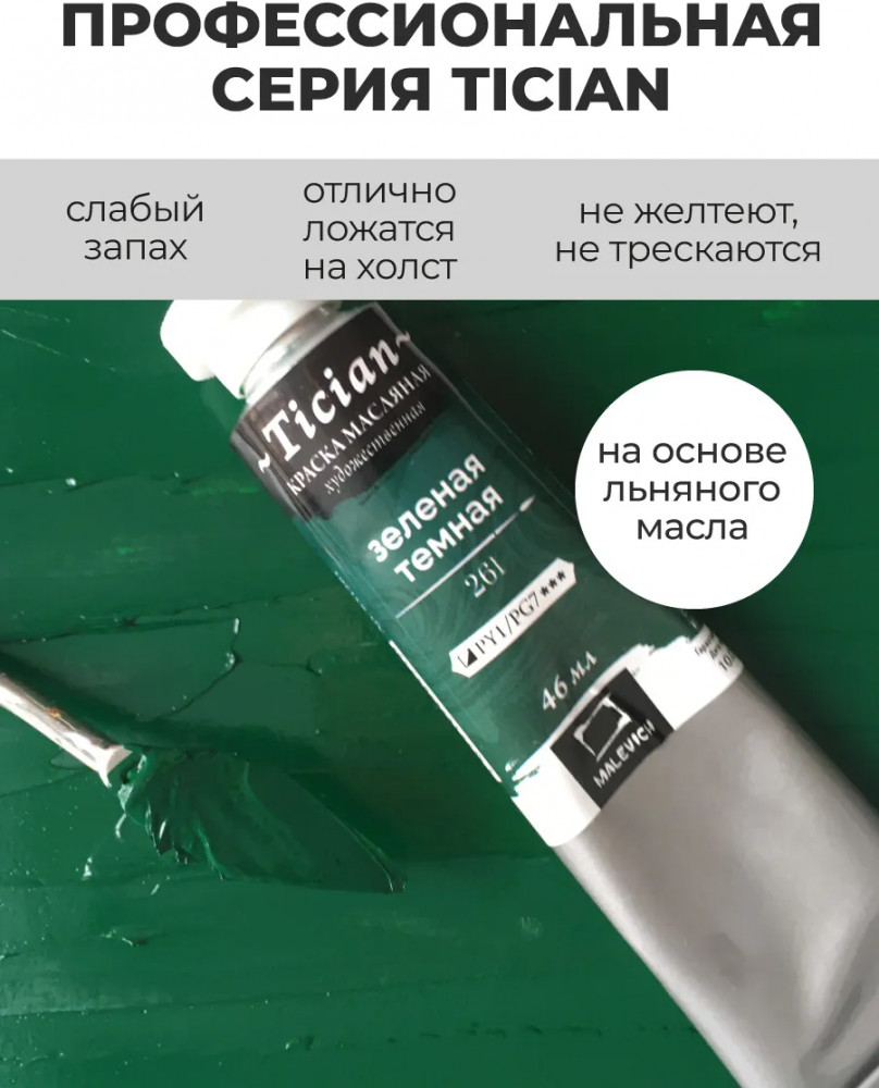 МалевичЪ Краска масляная художественная, 261 зеленый темный