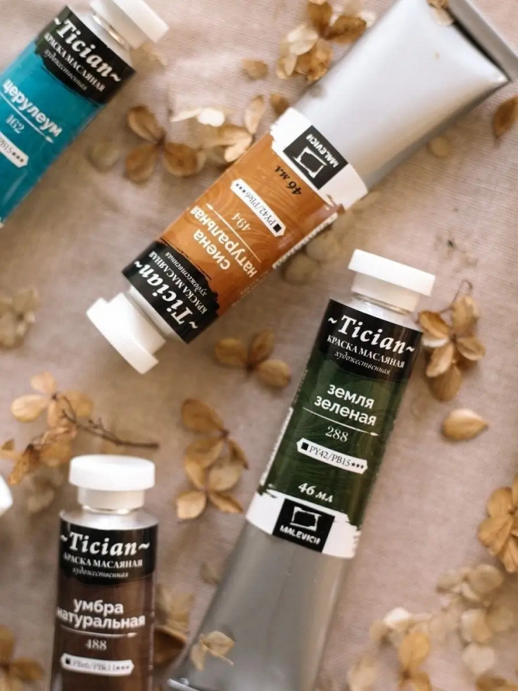 Цвета красивые, но несмотря что дата производства 2021 года, под колпачком уже засохшая краска. И масло вытекает, причем из всех тюбиков любого цвета.