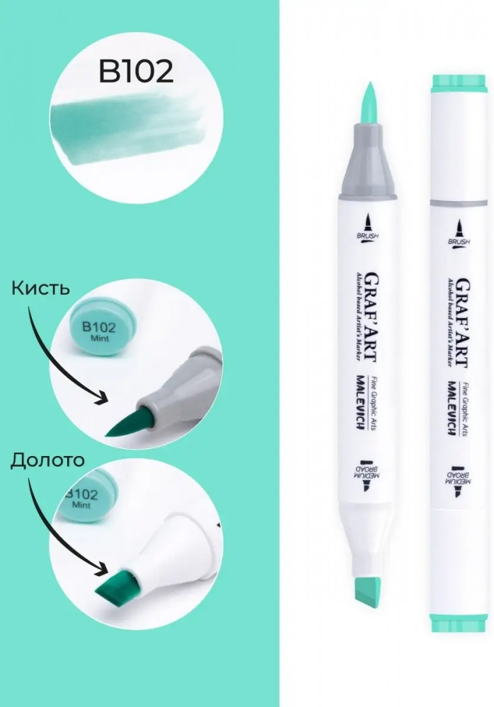 МалевичЪ Маркер спиртовой «GrafArt», B102 Мятный