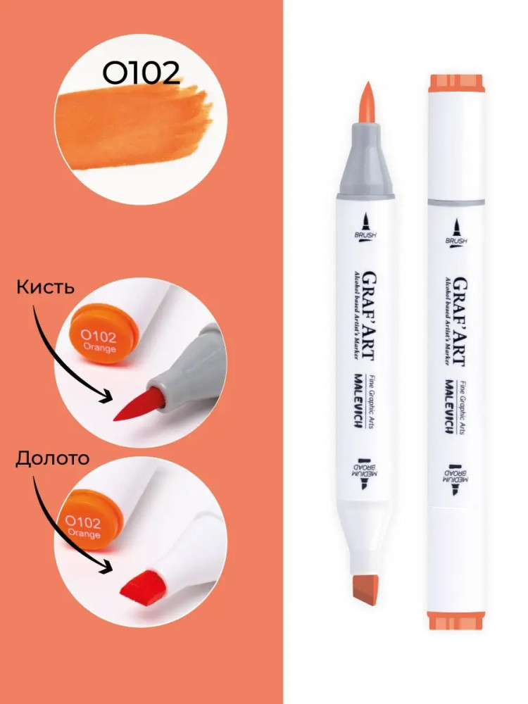 МалевичЪ Маркер спиртовой «GrafArt», O102 Оранжевый