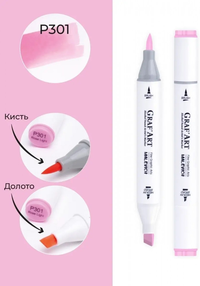 МалевичЪ Маркер спиртовой «GrafArt», P301 Розовый светлый