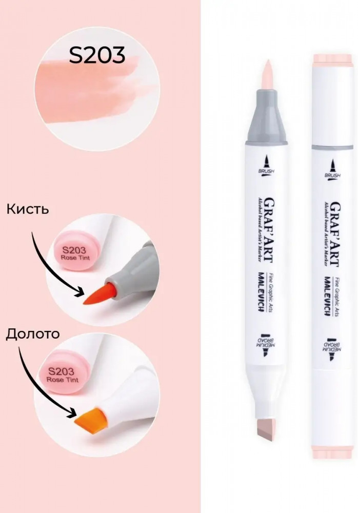 МалевичЪ Маркер спиртовой «GrafArt», S203 Розовый телесный