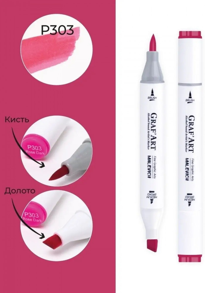 МалевичЪ Маркер спиртовой «GrafArt», P303 Розовый темный