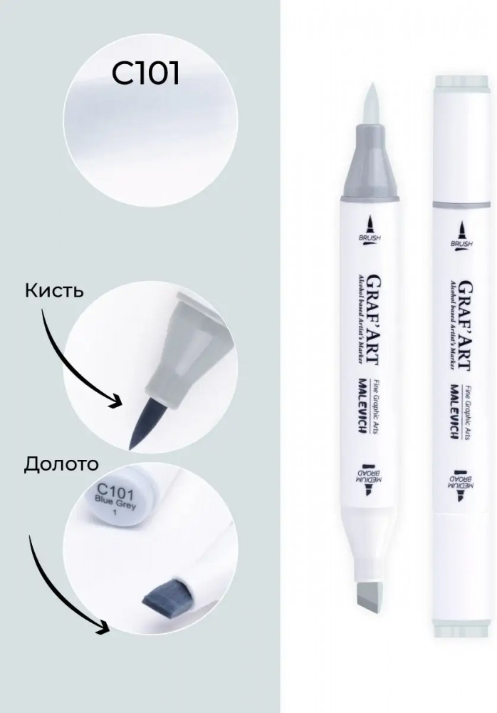 МалевичЪ Маркер спиртовой «GrafArt», C101 Серый голубой 1