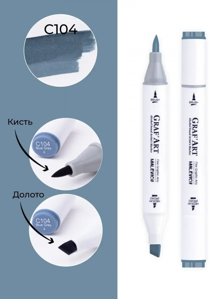 МалевичЪ Маркер спиртовой «GrafArt», C104 Серый голубой 4
