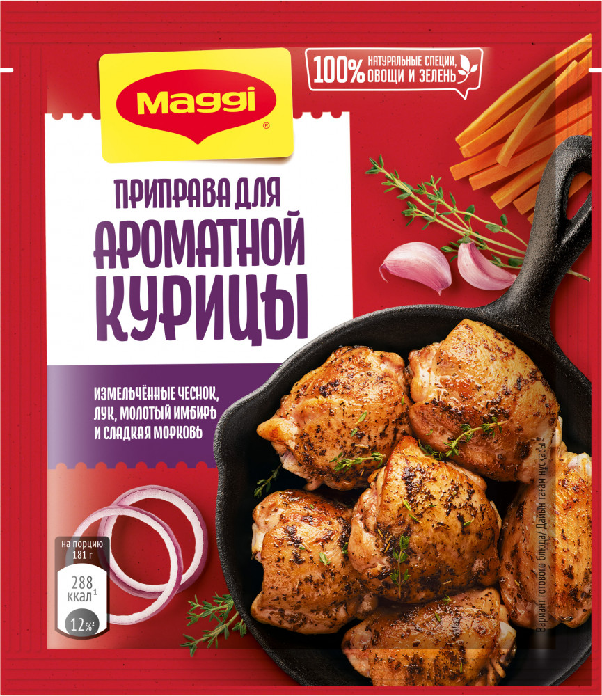 💳 Оплатить за товар можно при получении 🇰🇿 Есть бесплатная доставка по Казахстану от 1 дня 🎁 Копите бонусы с каждой покупки Курица — такой простой и многогранный ингредиент. Сколько разных блюд можно с ним приготовить: и в духовке, и на сковороде. И с приправой МАГГИ® для ароматной курицы. В этой приправе я подобрал специальную композицию натуральных трав, овощей и специй, чтобы наилучшим образом подчеркнуть аромат и вкус блюд из курицы. Измельченные чеснок и лук помогут раскрыть вкус курицы, сочетание молотого имбиря и пряных орегано, тимьяна, гвоздики и розмарина придадут душистый аромат, а молотый карри и сладкая паприка — румяный аппетитный цвет". Виссарион Михайлов, шеф-повар МАГГИ® |