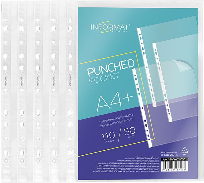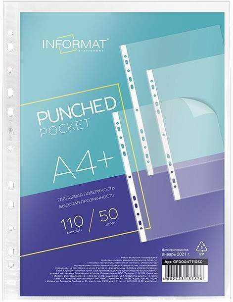 Informat Файлы плотныеВ данный момент этот товар отсутствует в продаже. Возможно, у нас найдется аналогичный или похожий товар здесь. Файл формата А4 из гладкой полипропиленовой пленки с универсальной боковой перфорацией. Толщина пленки — 110 мкм. |