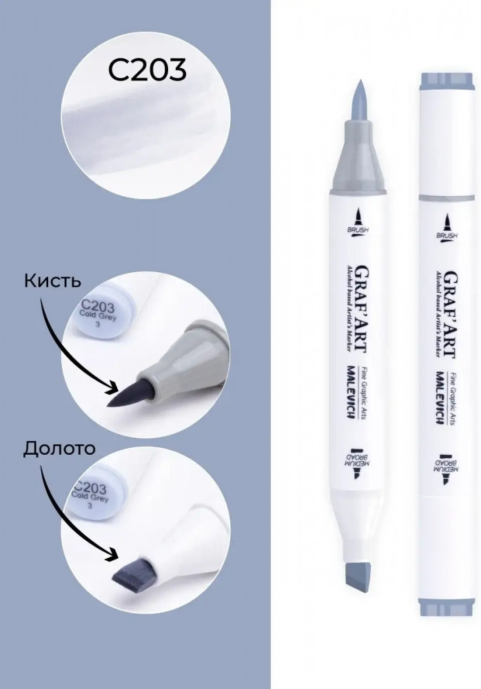 МалевичЪ Маркер спиртовой «GrafArt», C203 Серый холодный 3