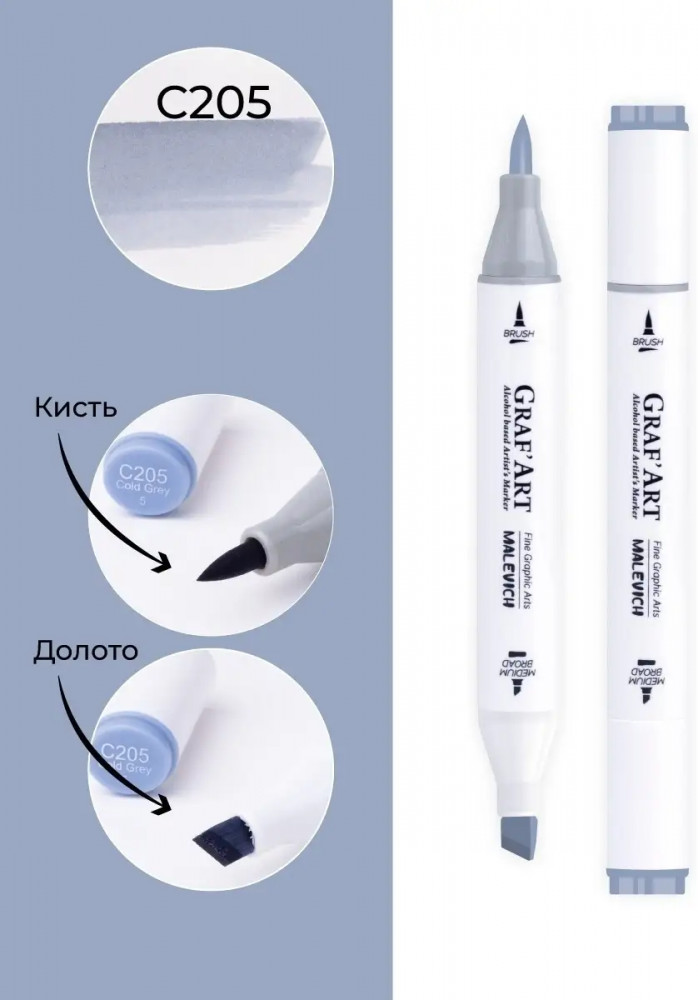 МалевичЪ Маркер спиртовой «GrafArt», C205 Серый холодный 5