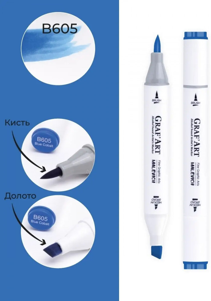 МалевичЪ Маркер спиртовой «GrafArt», B605 Синий кобальт
