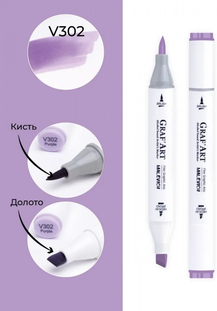 МалевичЪ Маркер спиртовой «GrafArt», V302 Сиреневый