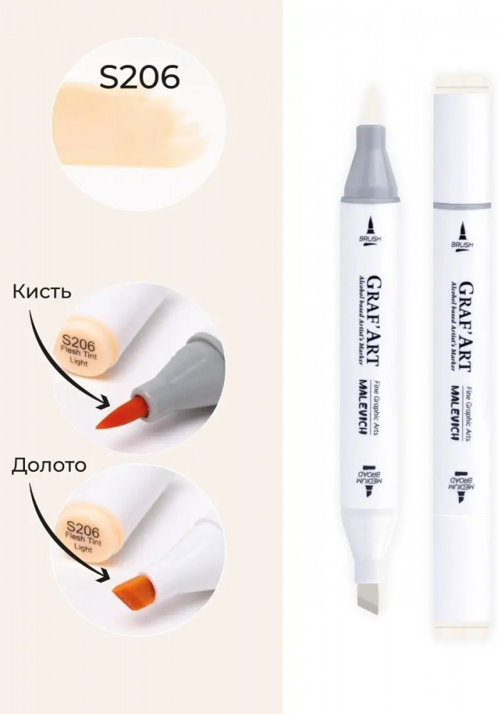 МалевичЪ Маркер спиртовой «Graf'Art», S206 Телесный светлый