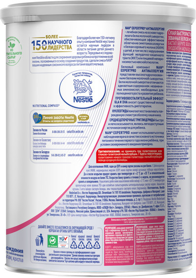 NAN Смесь сухая для лечения аллергии с рождения «Expertрro антиаллергия»В данный момент этот товар отсутствует в продаже. Возможно, у нас найдется аналогичный или похожий товар здесь. Смесь NAN № 1 производится в Швейцарии из коровьего молока. Органическое молоко отбирается по специальным стандартам в соответствии с международными требованиями к органическим продуктам. Коровы пасутся на альпийских лугах и питаются преимущественно свежей травой. Смесь NAN № 1 — это чистая рецептура без пальмового масла и ГМО. |