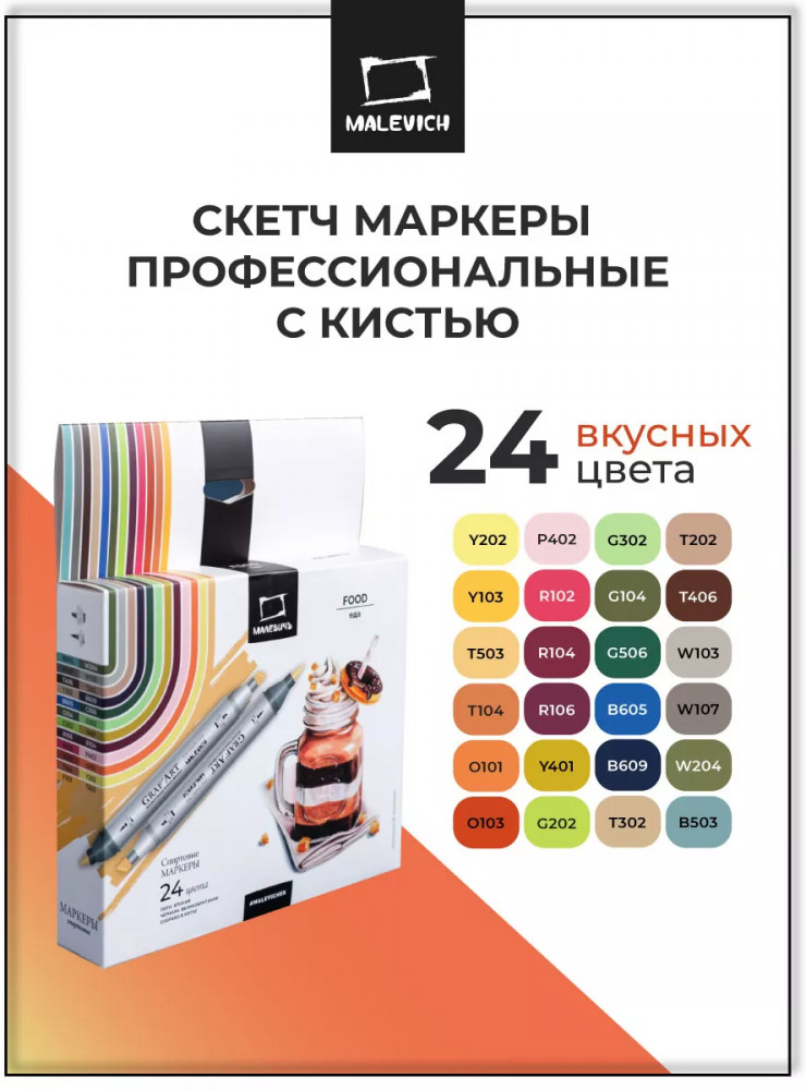 МалевичЪ Набор спиртовых маркеров «Еда»-20% +750