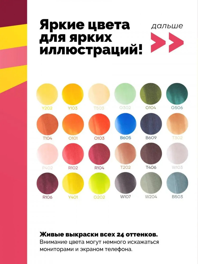 💳 Оплатить за товар можно при получении 🇰🇿 Есть бесплатная доставка по Казахстану от 1 дня 🎁 Копите бонусы с каждой покупки Серия: GrafArt Художественные маркеры «Малевичъ» Graf’Art для скетчинга выполнены на спиртовой основе, но они не имеют ярко выраженного запаха. Формула чернил, изготовленных в Великобритании, обеспечивает создание плавного градиента и отсутствие выраженных полос. Маркеры двусторонние: с одной стороны маркера классическое скошенное долото, с другой — экстра мягкая кисть (произведенная в Японии), которая позволяет работать маркером в живописной технике, создавая легкие воздушные мазки, растушевки и тонкие линии. Овальный корпус из пластика белого цвета. Его удобно держать в руках, а благодаря форме, он не перекататывается по столу, сохраняя порядок на рабочем месте художника. |