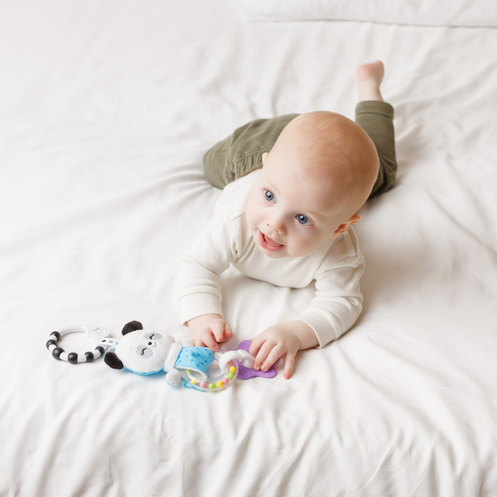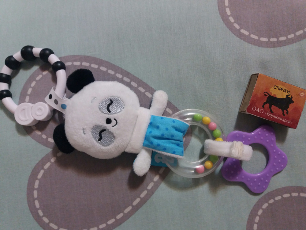 Все прекрасно, очень милая игрушка Единственное отличается от картинки, мне пришел с голубым держателем, а не черно-белым Но это на качество не влияет Удобно повесить в автокресло, на коляску, просто перед ребенком держать