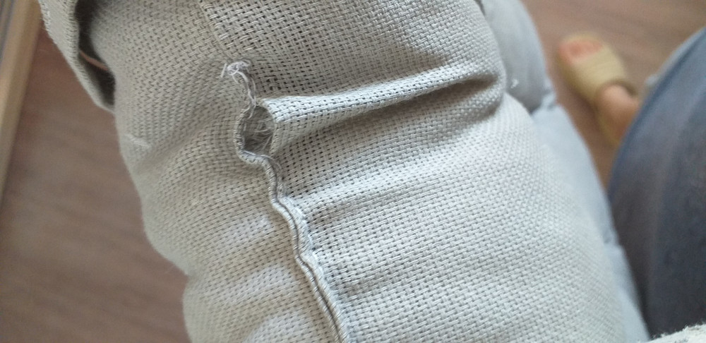 Не ровные строчки, нитки торчат, в катышках и крошке ( видимо поролон вылез). Из-за неровной строчки по краям подушки есть дырка, придется самой зашивать. Покупкой немного расстроена