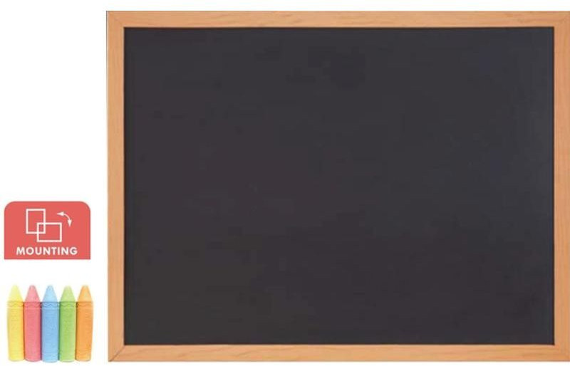 Мел по доске пишет хорошо. Маленький стикер Comix размером 3см на 9мм размещенный на рамке снизу и справа - не смущает. По совету Наили трогать/отковыривать его не стала. Установила доску вертикально. В наборе идет шнур с двумя шурупами с кольцом вместо шляпки, не знаю как они правильно называются, для возможности подвеса.