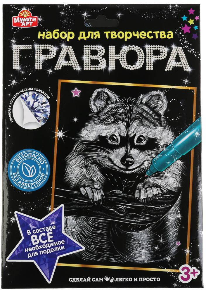 Multi Art Гравюра «Енот»В данный момент этот товар отсутствует в продаже. Возможно, у нас найдется аналогичный или похожий товар здесь. Набор для творчества «Гравюра. Енот» ТМ «Multi Art» — отличный подарок для ребёнка, который будет способствовать развитию его творческих способностей. |