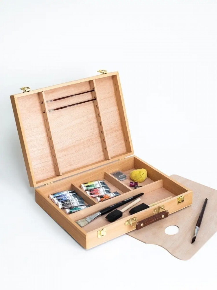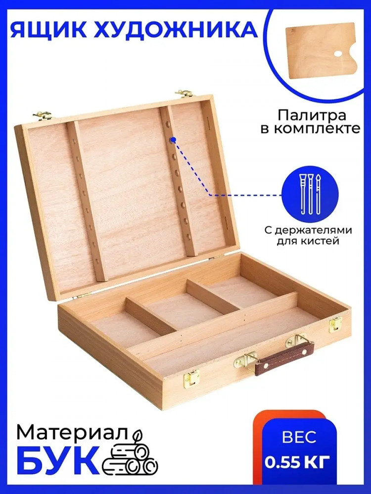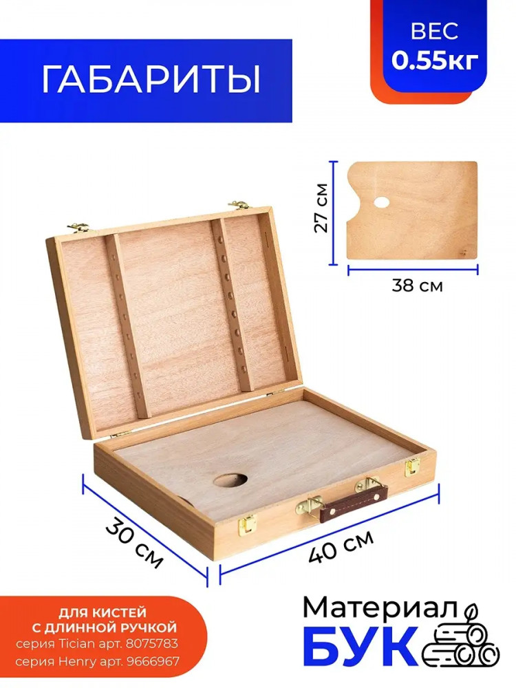 💳 Оплатить за товар можно при получении 🇰🇿 Есть бесплатная доставка по Казахстану от 1 дня 🎁 Копите бонусы с каждой покупки Ящик для хранения и переноски художественных принадлежностей. Имеет отделения для красок и специальные держатели для кистей. В комплект входит палитра для красок. Съемный лоток позволяет оптимально распорядится внутренним пространством ящика. Размер — 40×31,5×8 см. Палитра — 38×27 см. Внутренние отделения — 38×12 см, 15×12 см (3 шт.) |